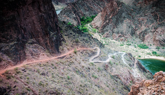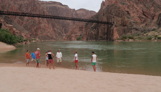 Our guided backpacking in Grand Canyon on the South Kaibab Trail is renowned for big views. In 1928 it was literally created by the National Park for this reason, and unlike other inner canyon trails, this trail runs along open ridgelines instead. We will cross the Colorado River via a suspension bridge, en route to our camp located at the junction of Bright Angel Creek and the Colorado River.