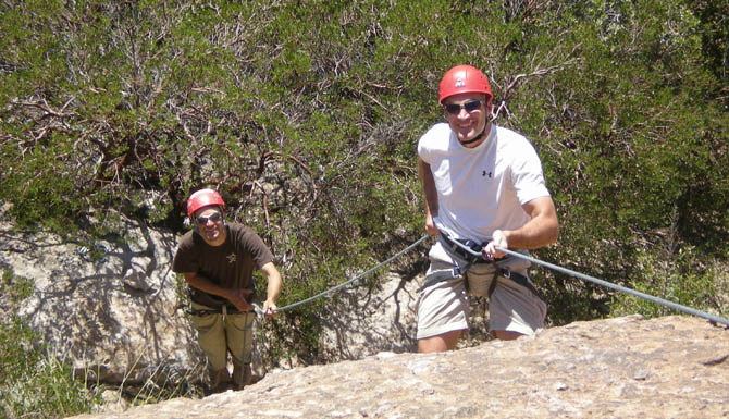 Rappelling is a basic skill of the vertical environment that is both fun and exciting. CenterFocus offers rappelling tours right in the middle of Phoenix, Arizona! Participants are fully outfitted and educated on anchor building and rappelling techniques. We will then take to the rock, rappelling vertical and overhanging cliff faces from 20 - 120 feet in height.