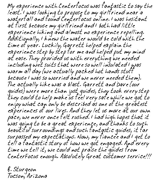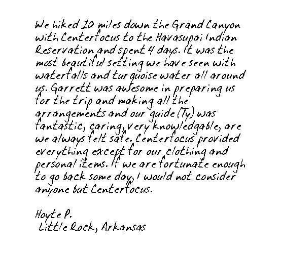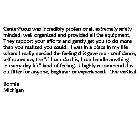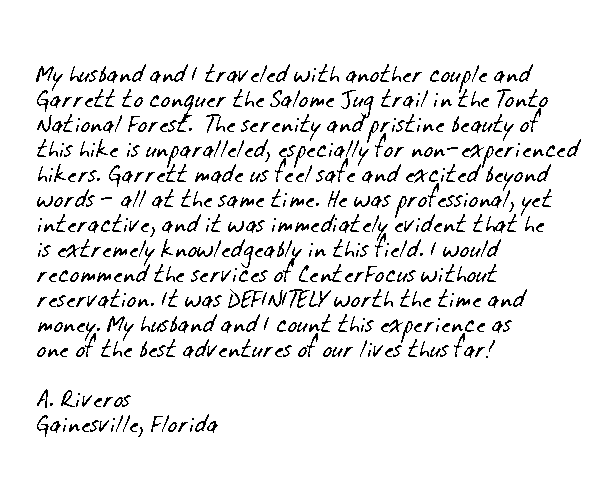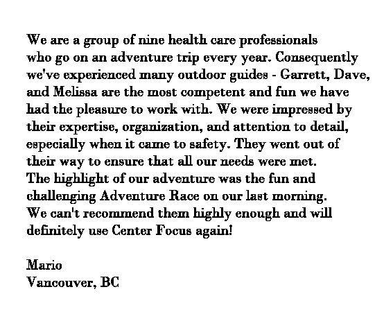 We firmly believe that CenterFocus provides an experience that no other guide company offers. Our guides give you a part of themselves on each tour which makes each trip unique. We choose our guides not only for safety and experience, but personality as well. They put so much heart and soul into each tour to ensure that your experience will last you the rest of your life. This is evident with the amount of return clients we see each year, but don't just take our word for it...click on the names to see what people had to say about us.